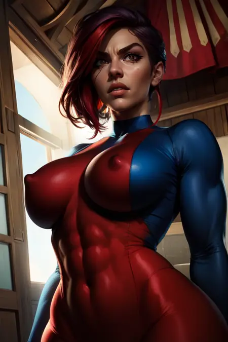 可添加 - 红色连体衣与蓝色手套 —— 以保持色彩一致性