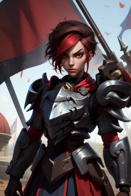 护甲,单侧肩垫,胯部裙帘,胫甲,连体衣,靴子,
