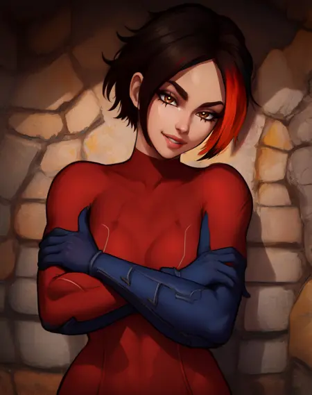 可添加 - 红色连体衣与蓝色手套 —— 以保持色彩一致性