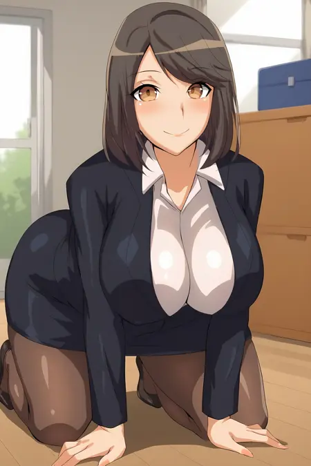 白色衬衫、有领衬衫、黑色裙子、黑色外套、黑色连裤袜、正式、铅笔裙、OL、商务套装、教师、裙装套装、长袖、衬衫