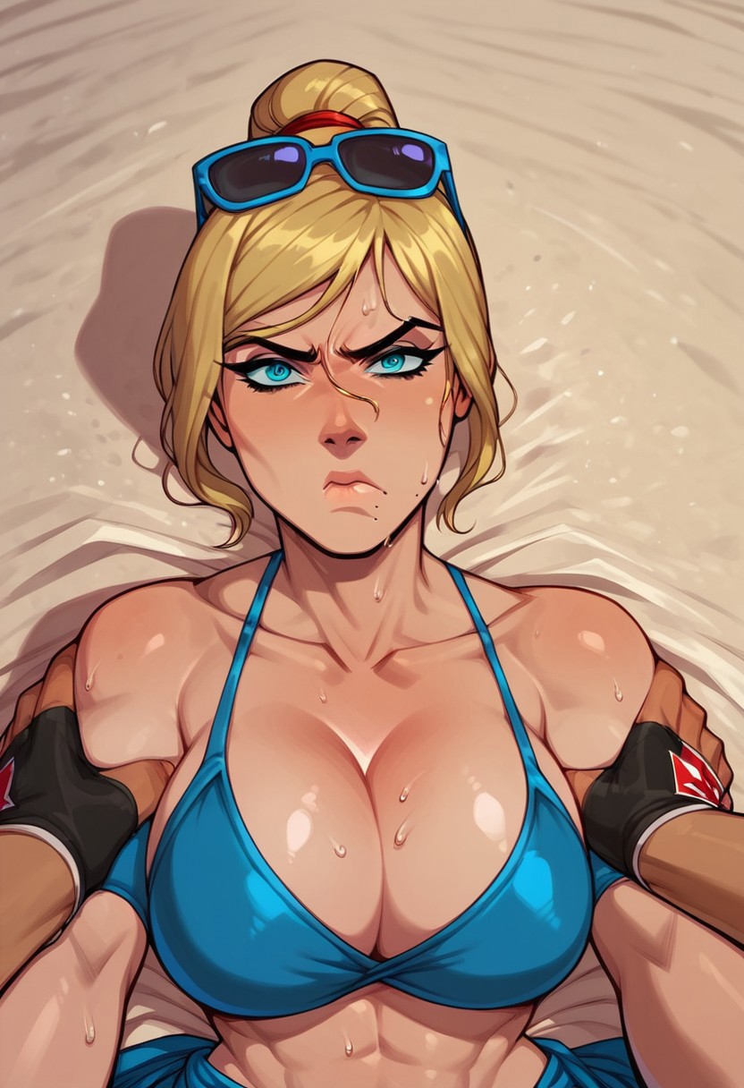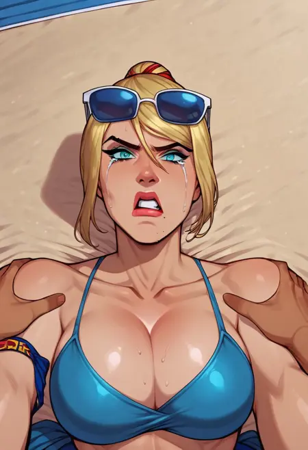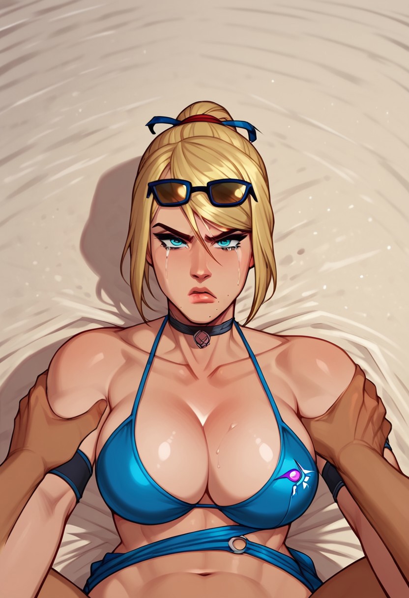 Process - Use cut&paste training images to convince PonyXL to grab arm/shoulder instead of breasts. Then generate outputs and thicken the dataset for v2. First generation was trained using Blair Dame PonyXL character.