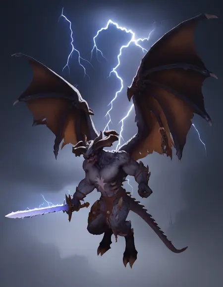 Be'lakor, monster, sharp teeth, horns, wings, sword,