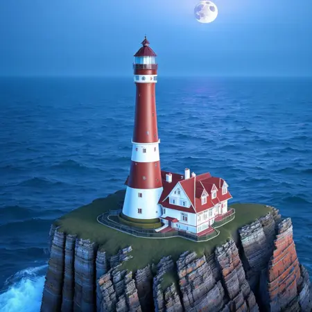 이 모델은 다양한 배경에서 빨강-하얀 색상으로 구성된 등대를 생성할 수 있습니다.