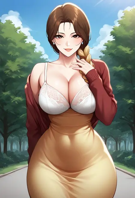 (( lora:cho\_mi-kyung:1 , cho_mi-kyung, beautiful brown eyes, clear eyes, bright pupils, beautiful eyes, beautiful brown hair, huge and shaggy breasts, thin waist, wide hips, beautiful skin, natural beauty, extraordinary beautiful woman, attractive woman, super sexy woman, lustful body, sexy woman with seductive obscene body, sensual body, voluptuous body, sexy beauty, most beautiful milf, ))