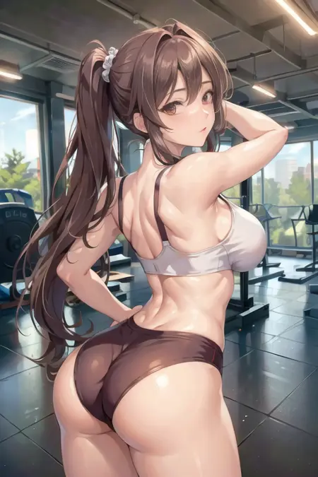 • 背面视角关键词:back_view, photo from behind, looking_at_viewer