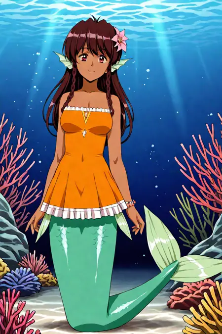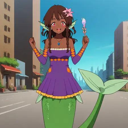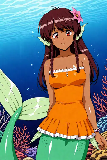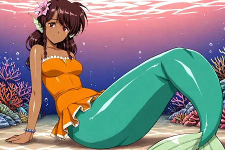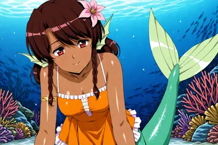 这是另一个我收到的人鱼OC,我觉得也该为她制作一个模型。这次可能还是有点不稳定,但我使用了更大的数据集,尽管主要仍是KKL的图片。我还加入了一些她人类形态的训练,如果你更喜欢人类形态,不妨试试看。
