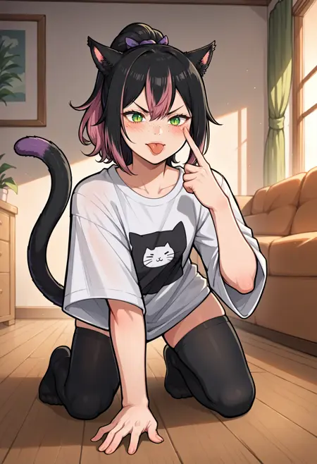 “Akanbe”是一种俏皮的手势,指的是拉下下眼睑并伸出舌头,常用于轻松或顽皮地捉弄或调侃。