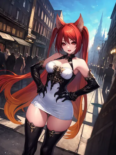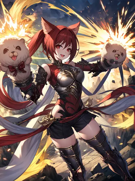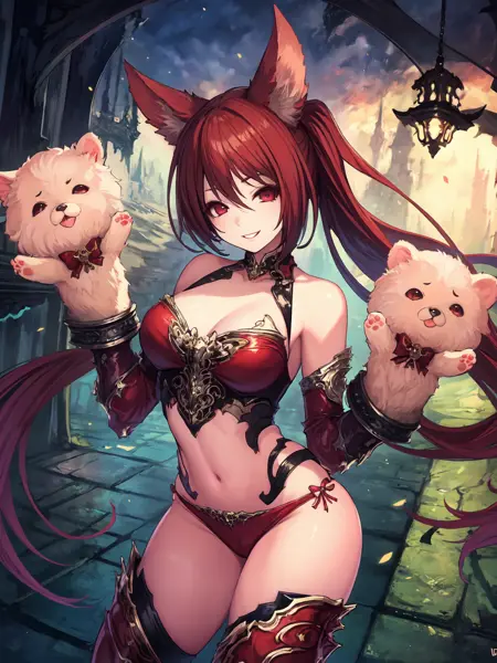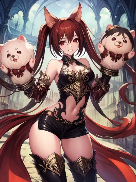 Basic characteristic : Red/brown hair,twintails,red eyes,animal ears ;