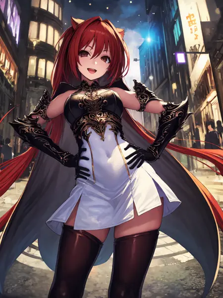 New costume : CerberusHero,white topwear / dress ,(red skirt),capelet,thigh strap,capelet ;