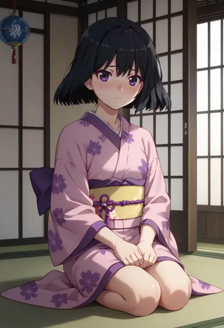 キャラクター:seiuhigasa、黒髪、短髪、紫の目(希望すればボブカットを追加可)