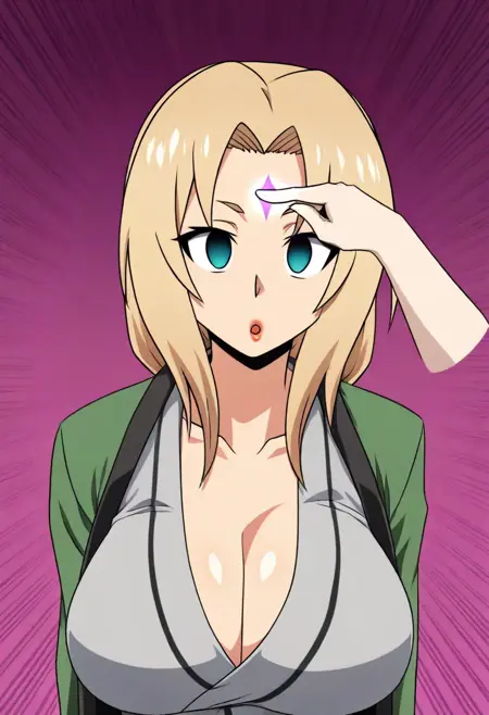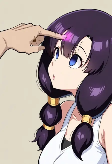 손가락을 사람의 이마 중앙에 대어 트랜스를 유도하는 장면을 생성하도록 설계된 LoRA입니다.