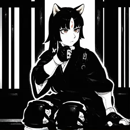 基础提示:aksaga,长发,黑发,狗耳,刘海,额头印记,棕色眼睛,中等胸部