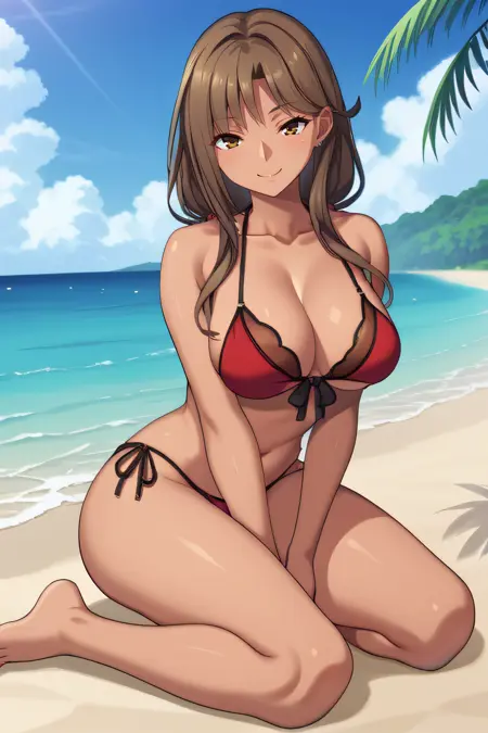 miyuki, brown eyes, brown hair, long hair, dark skin