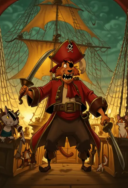 这是我第二次尝试通过从我制作的FLUX风格生成的图像来逆向工程PDXL模型:猴子岛的诅咒风格 [FLUX]。