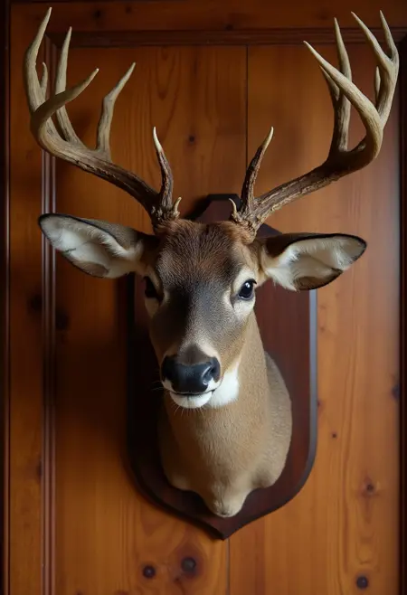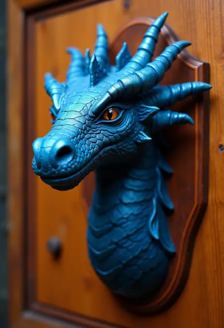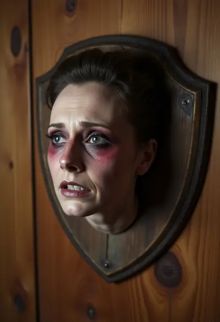 a photo of hud_tr0phy, SUBJECT, head on a trophy plaque seen hanging on a wall