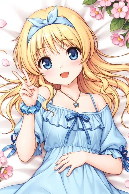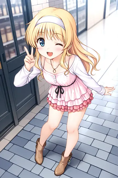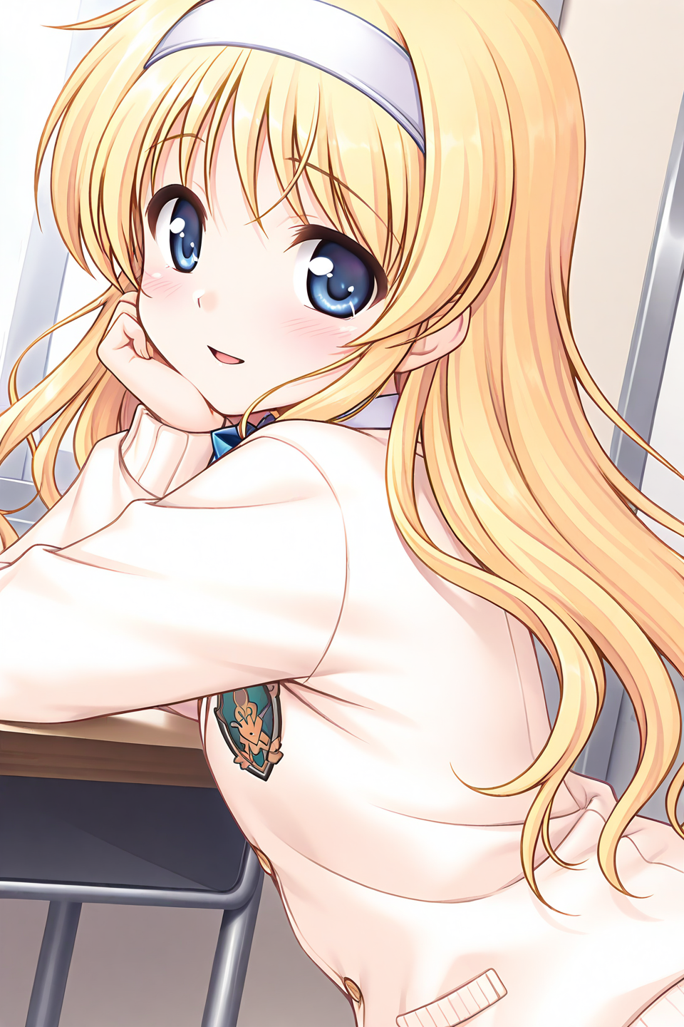 suzuki kana,blue eyes,blonde hair,long hair,bangs,
