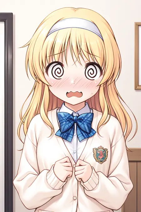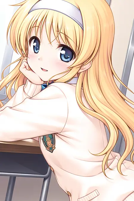 suzuki kana, blue eyes, blonde hair, long hair, bangs,