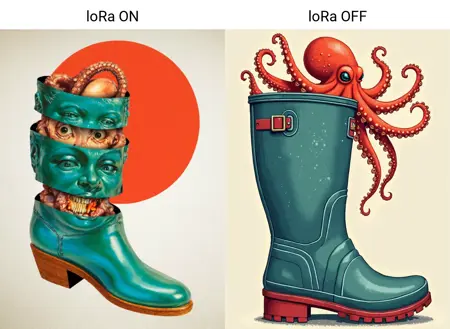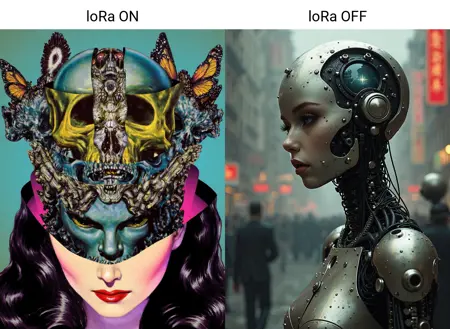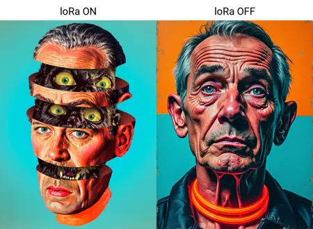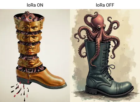 由于模型在大量“打开的头部内部有怪物、花朵、眼睛等元素”的图像上进行了密集训练,它倾向于始终生成人脸(尤其是女性面孔),即使提示中请求的主体不同。这一点相当明显,因此你必须喜欢这种风格。