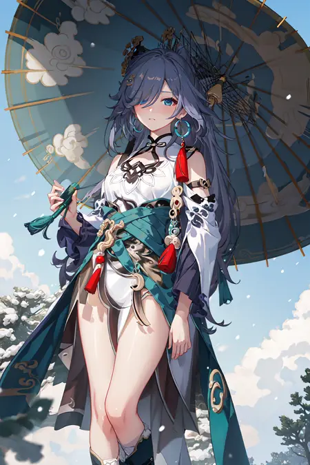 本次lora还训练了云墨的伞,有需要把“Oil-paper umbrella,“将入prompt即可。