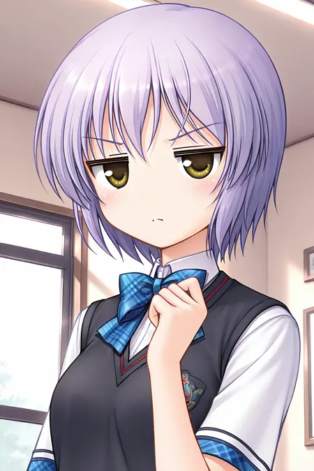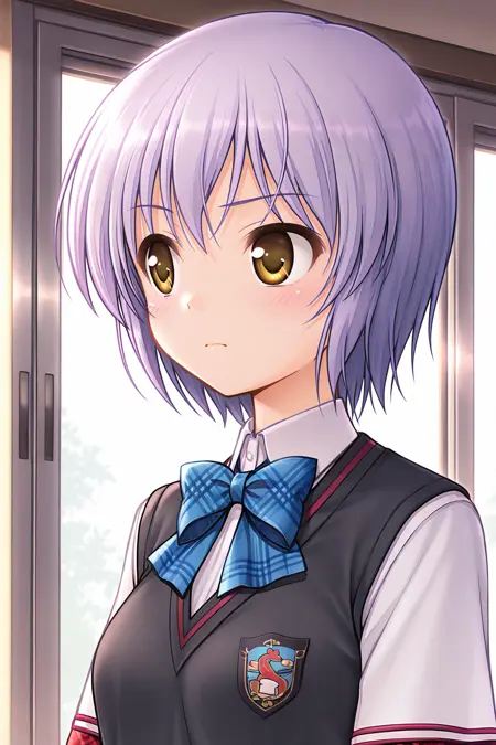 misono senri,1girl,solo,yellow eyes,brown eyes,light purple hair,hair between eyes,short hair,