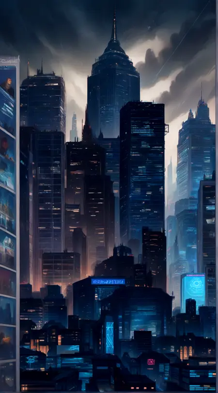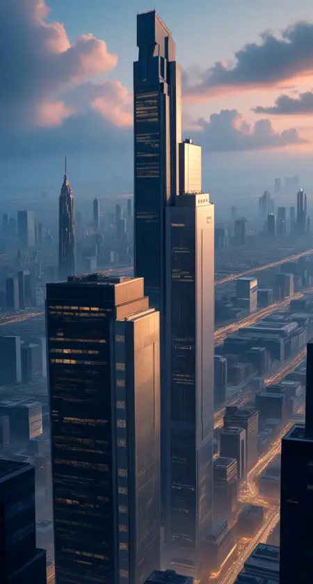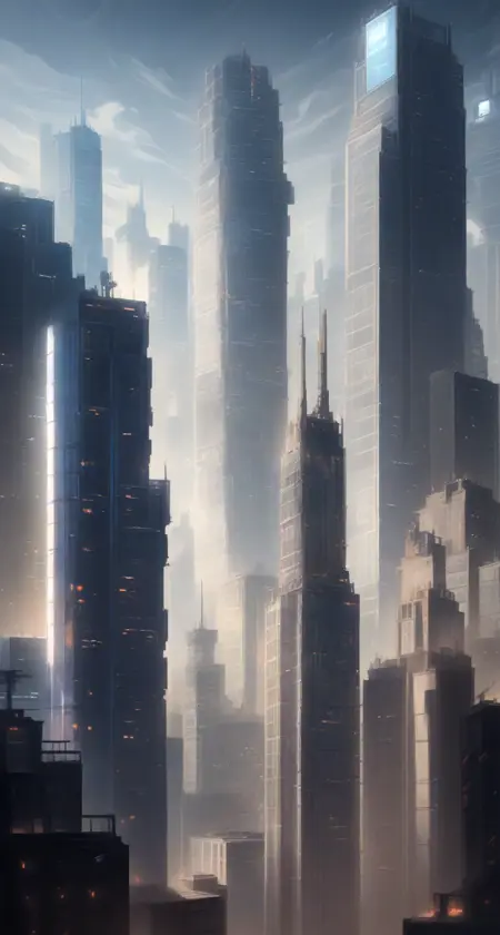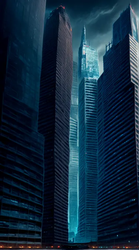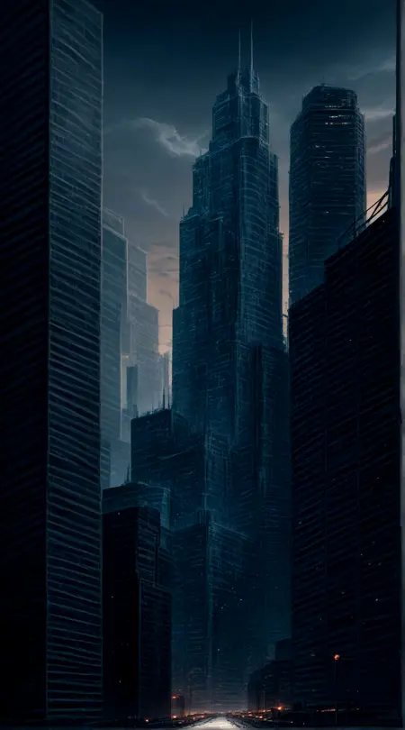 该模型的提示词为:反乌托邦未来、宏伟建筑、建筑、城市、城市景观、风景、建筑物、摩天大楼、未来、科幻、科学幻想。
