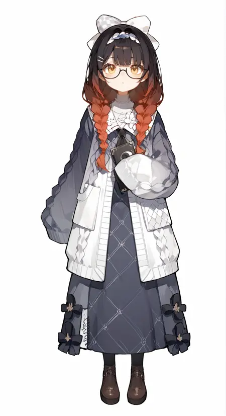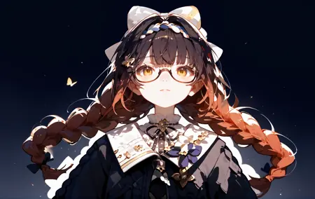 可使用twin braids, long hair, glasses等固化特征。