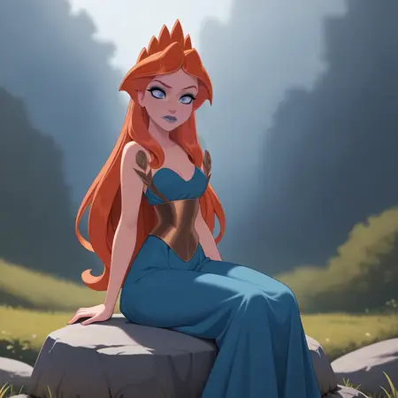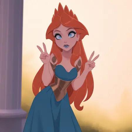 1girl, solo, Hera, long hair, orange hair, blue eyes, lipstick,
