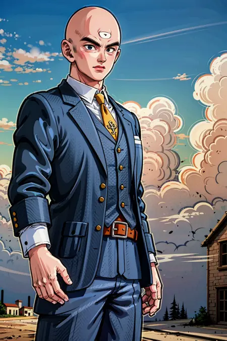 tien, 第三只眼, 光头, 黑色眼睛, 健壮的男性