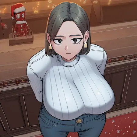 (( lora:the_story_of_how_i_got_together_with_the_manager_on_christmas:1 , the_story_of_how_i_got_together_with_the_manager_on_christmas, 얇은 허리, 넓은 엉덩이, 아름다운 피부, 아름다운 진회색 눈, 맑은 눈, 밝은 동공, 아름다운 눈, 아름다운 진회색 머리카락, 아름다운 미디엄 보브 헤어스타일, 크고 흐트러진 가슴, 자연스러운 미모, 뛰어나게 아름다운 여자, 매력적인 여성, 초 섹시한 여성, 탐욕스러운 몸매, 유혹적이고 음란한 몸을 가진 섹시한 여자, 감각적인 몸매, 풍만한 몸매, 섹시한 미인, 가장 아름다운 MILF, 피어싱 없음, 피어싱 없음, )), ((오른쪽 눈 밑에 한 개의 점, )),