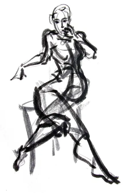 增强你的提示词:黑白、粗糙线条、动态、富有表现力的笔触、轻微污迹、细铅笔、炭笔素描、动态手势、简约背景