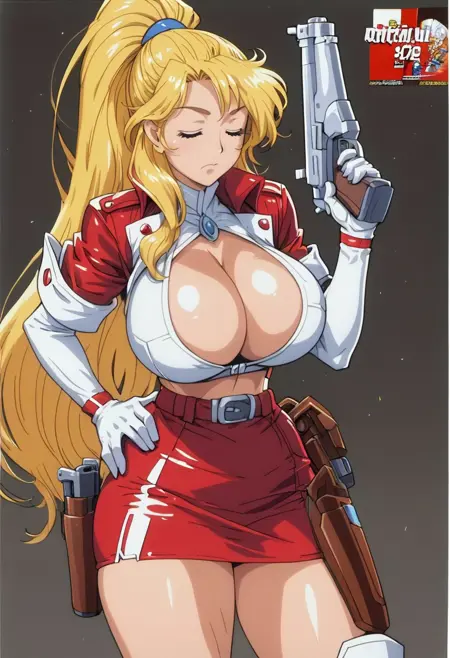 The appearance is completely different from the previous work, but first of all, the appearance of the Denjin makai is purple hair and the outfit suits the name of the black knight (?) All black, but after moving to the Guardians, he wears a red jacket, skirt, and white tank top with a blonde ponytail. That's why he doesn't look like a black knight at all. A look reminiscent of a certain blonde ponytail from Banpresto .