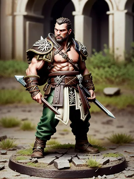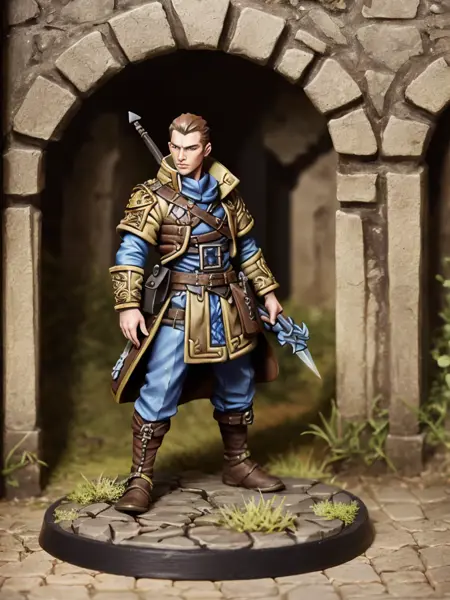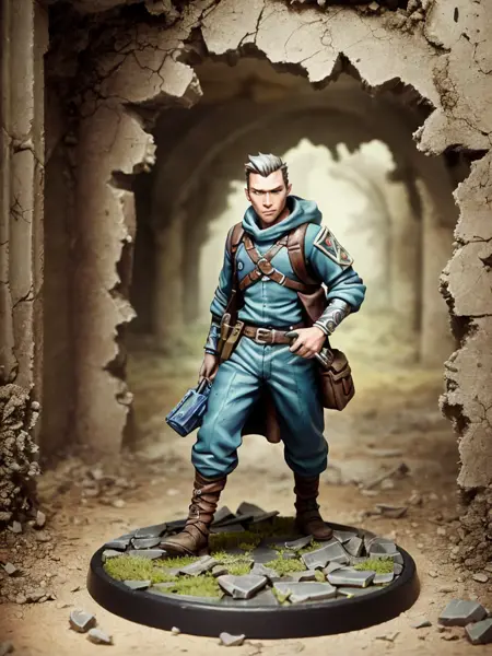 positive prompt: a painted miniature of a male human thief on a base, in a lost ruin, pmini style, character design, studio lighting, (extremely detailed 8k wallpaper), Intricate, High Detail figurine, Sharp focus, dramatic, photorealistic art <lora:Painted_Miniature_i_v3.0:0.6>