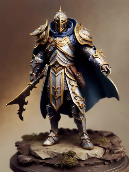 A lora model dedicates to generate painted miniature figurine. The lora model is trained with SD1.5 base model. The example images are generated with Clarity and Protogen x5.3 (Photorealism) ckpt models. It should work fine with other fine tune SD1.5 originated ckpt models.