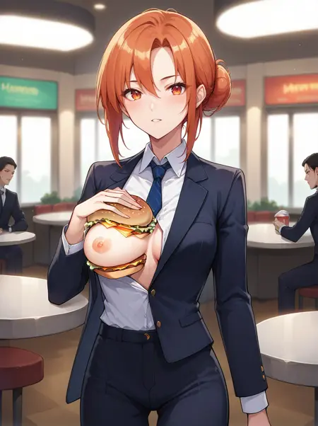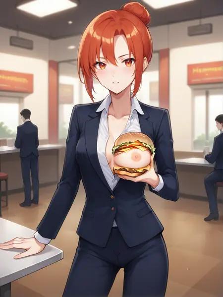 트리거 단어: single breast burger, sbb, 버거 빵, 한 쪽 가슴 노출 (누드/상의 탈의 아님)