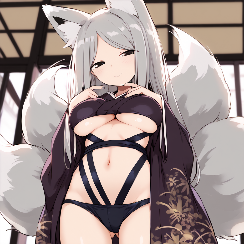 yashikikitsune, fox ears, multiple tails, kitsune, 1girl, solo
