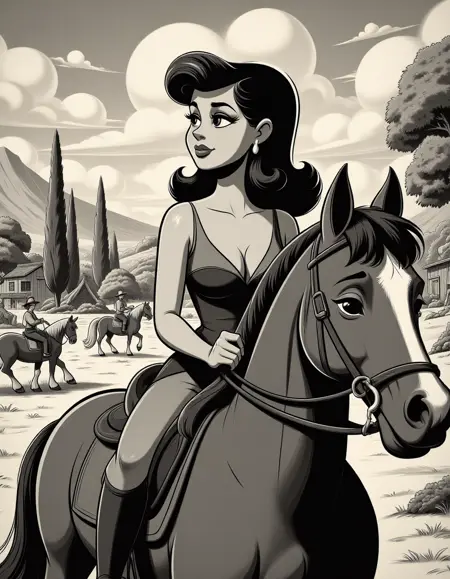 "흑백 빈티지 만화" 스타일은 20세기 중반의 고전 애니메이션 아트를 연상시키는 흑백 애니메이션의 정수를 담고 있습니다. 부드러운 선, 단순한 음영, 표현력 풍부한 캐릭터가 특징이며, 큰 눈이나 과장된 제스처 같은 특징이 자주 등장하며懷舊적인 배경에 배치됩니다. 단색 팔레트는 색상에 의존하지 않고 빛과 그림자로 깊이와 대비를 강조합니다. 이 스타일은 깔끔하고 스타일리시한 형태로 시대를 초월한 매력과 우아함을 불러일으키며, 쾌적하거나 기묘한 분위기의 스토리텔링에 자주 사용됩니다.
