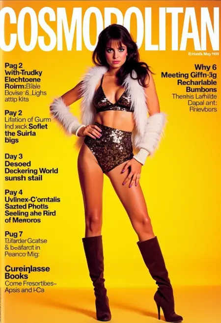 关键提示: 图像为 MONTH YEAR 期《Cosmopolitan》杂志封面的照片。封面采用风格化、鲜艳的设计。标题 “COSMOPOLITAN” 以粗体白色大写字母醒目地显示在顶部。背景为 color 渐变,上部色调较浅,下部较深,营造出戏剧性效果。