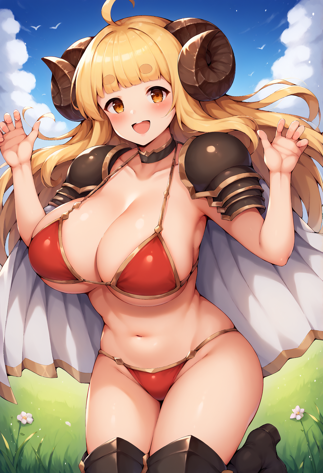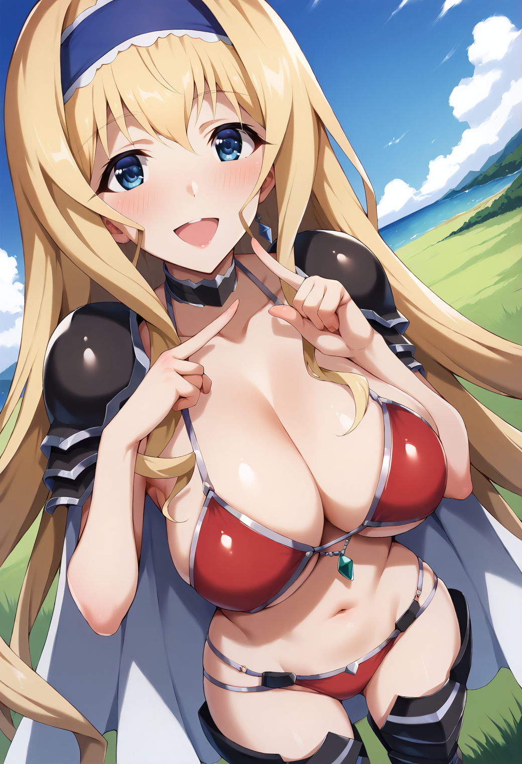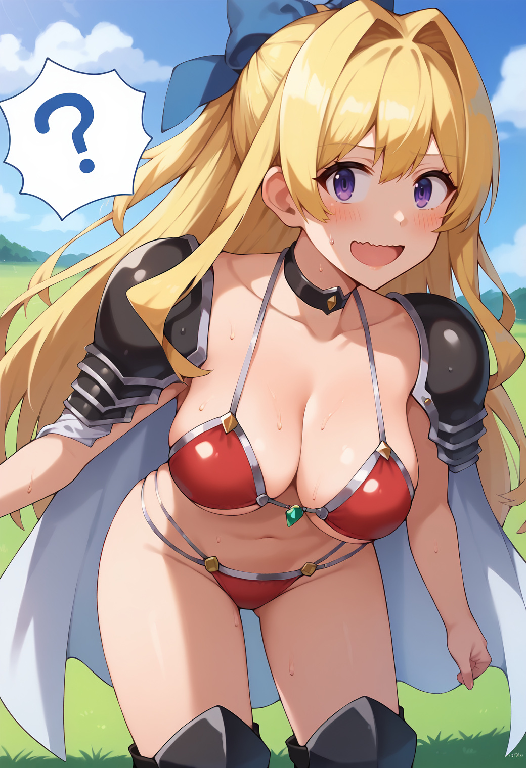비키니 아머, 어깨 아머, 초커, 빨간 비키니, 허벅지 부츠,