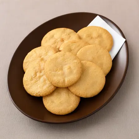 Akō's salted rice crackers are a specialty of Akō City in Hyōgo Prefecture, known for using sodium chloride salt that contains magnesium chloride, harvested from the Seto Inland Sea. Even before the widespread adoption of ion-exchange membrane salt production using vacuum evaporation tanks, Akō's salt was highly regarded for its quality during the era when salt pans and traditional boiling methods were employed. The salted rice crackers made with this salt offer a simple yet savory flavor, with a gentle saltiness and a toasty aroma.