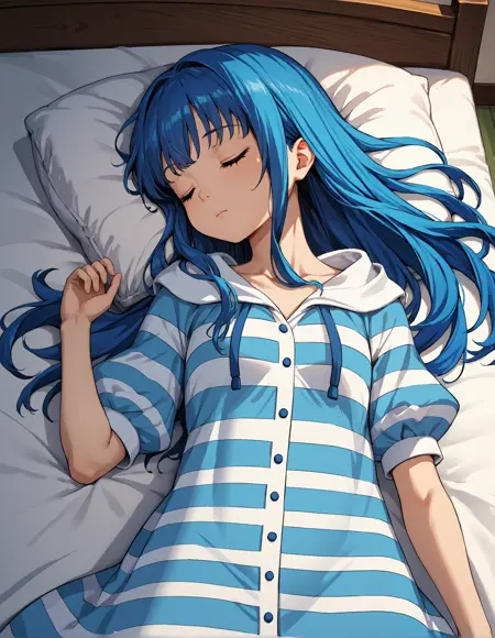 睡衣: mgrcnanamiyachiyo, nnmpjm, 长发, 白色条纹睡衣, 蓬松袖子