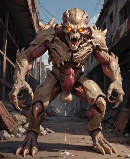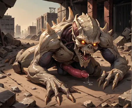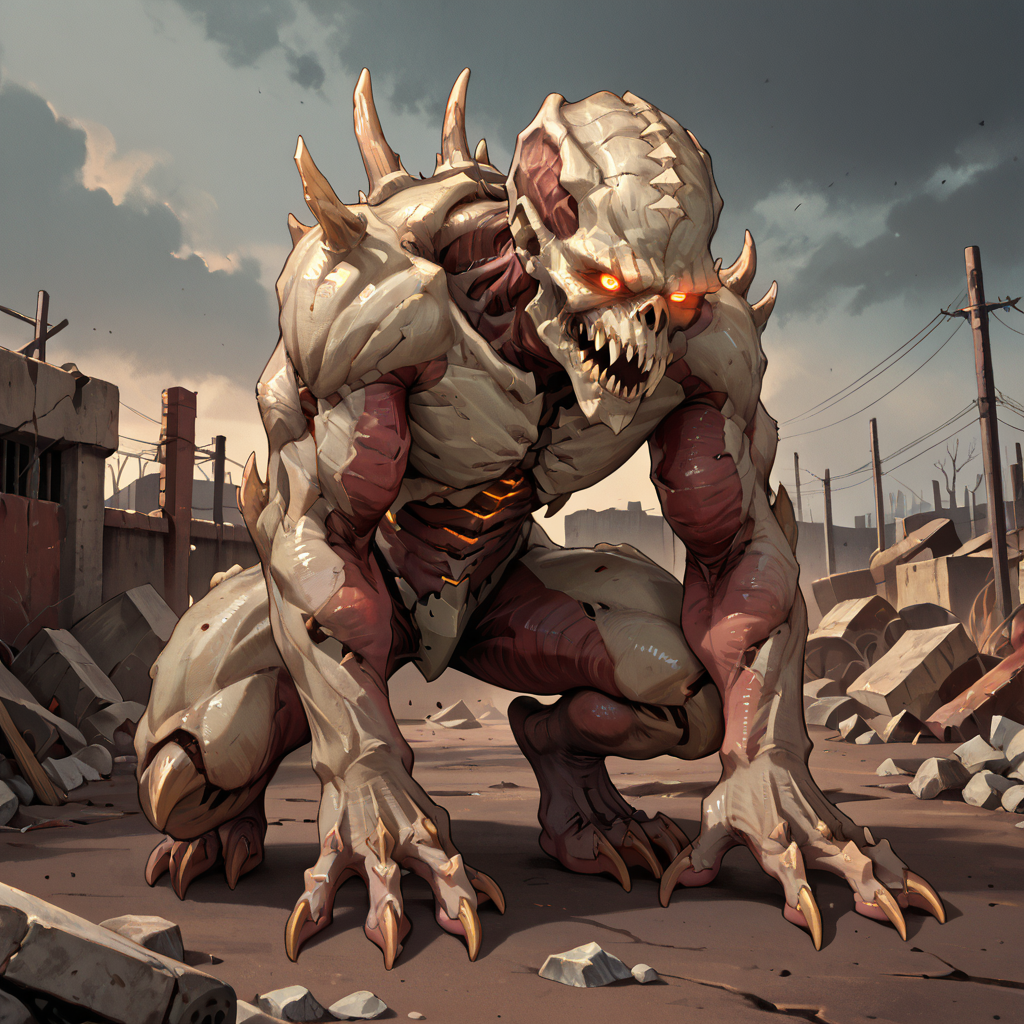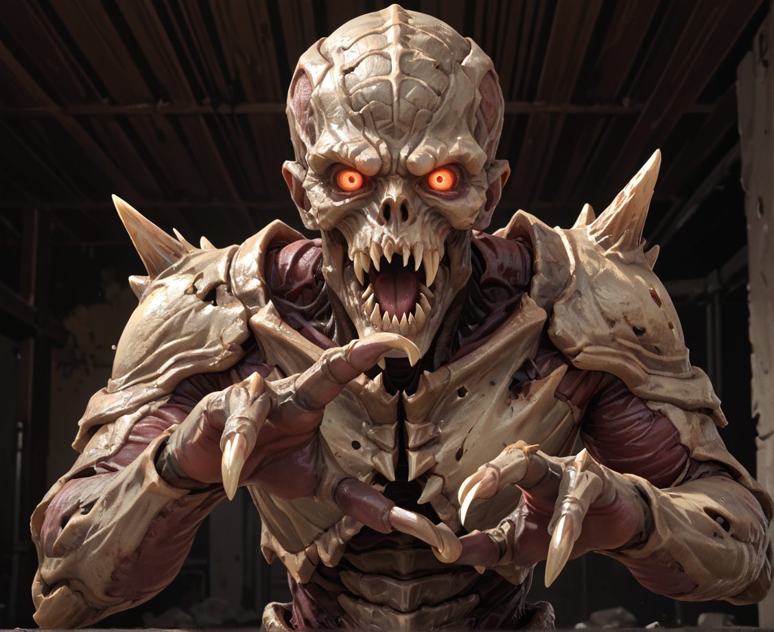 Tags: Archvile, demon, doom, horror, horror (theme), monster, bones, claws, spikes, glowing eyes, sharp teeth, grey skin, shiny skin, exoskeleton, segmented body,