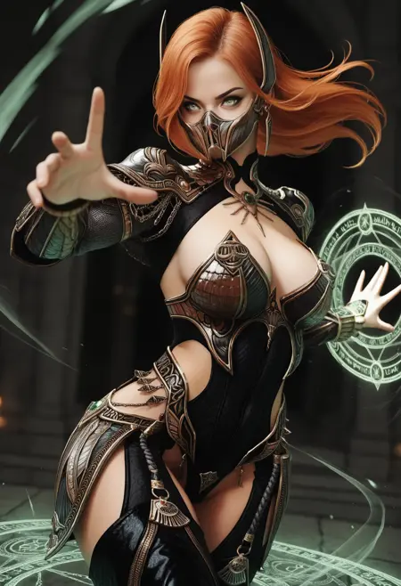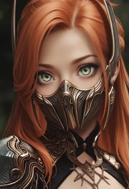 주요: d4rkgin4rm0r, 톤 레오타드, 비키니 갑옷:pauldrons:허리 갑옷, 숄드 (의상):팔 보호대, 허벅지 부츠, 마스크,