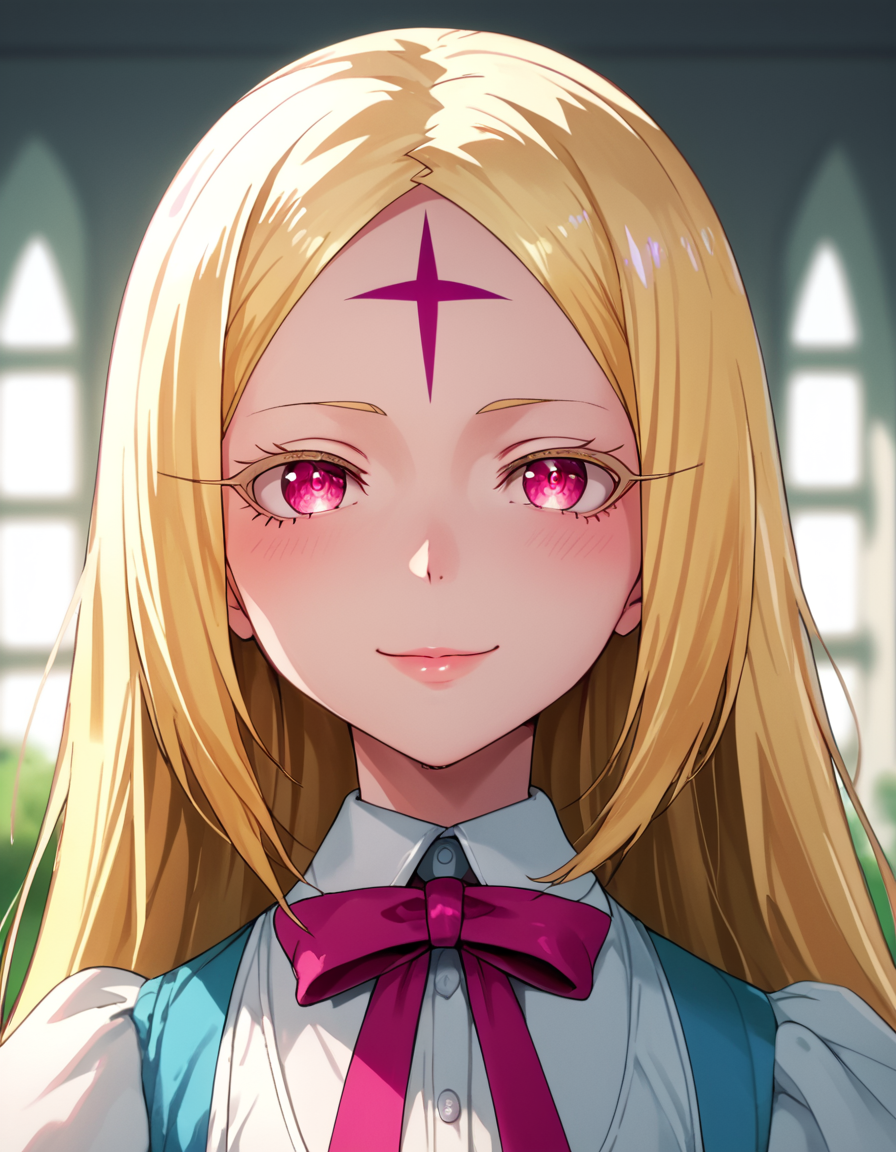NeroAlice, 金发, 极长发, 粉色眼睛, 额头印记, 白色连裤袜,
