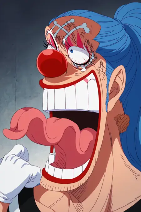 提示 2:one_piece_funny_face, eye pop, snot, teeth, eyes vein lines, open mouth,