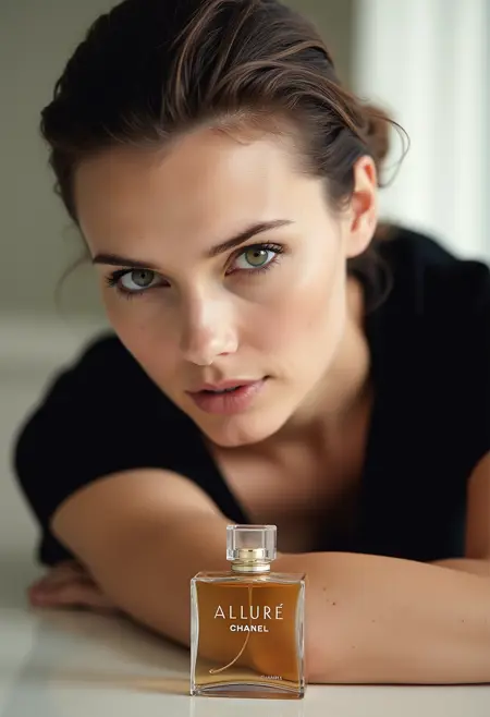 *이 이미지는 DESIGNER, PERFUME NAME 향수를 위한 하이 패션 광고입니다.