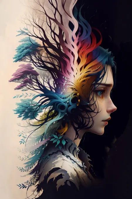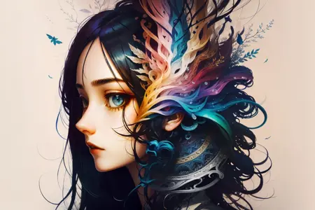 プロンプト: colorhalf00d, 女性のポートレート, lora:colorhalf00d-000010:.8