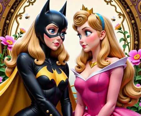Civitai의 빠른 Flux 학습 시스템과 비교적 간단한 태그/캡션을 사용하여 제작된 디즈니의 '잠자는 숲속의 공주'의 오로라 캐릭터 LoRA.