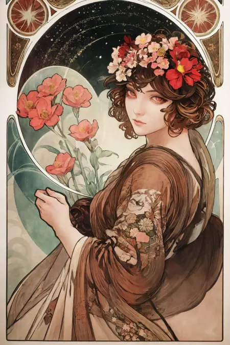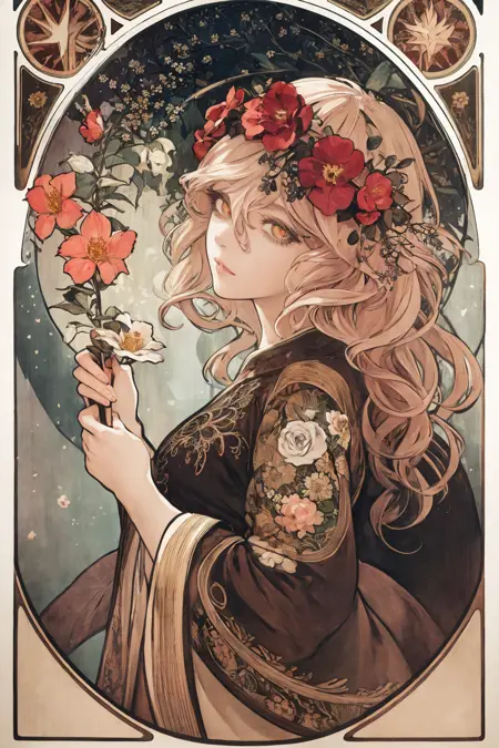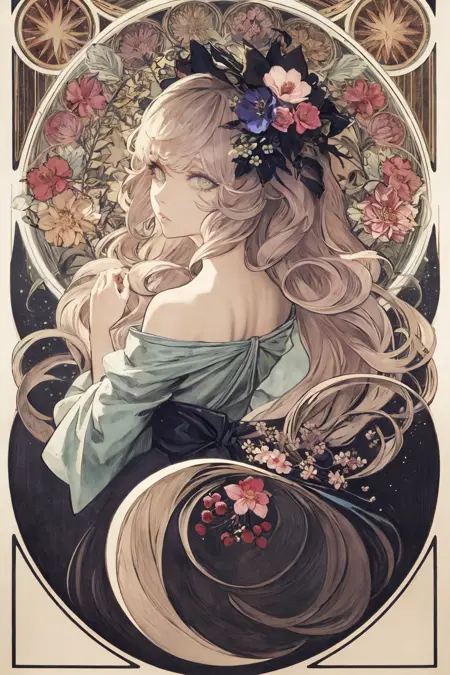 art nouveauの重みを調整することで、ムチャのスタイルの構図を制御します。