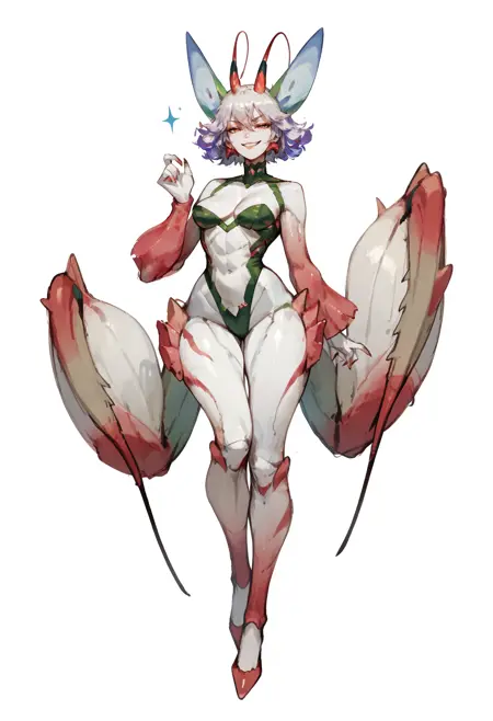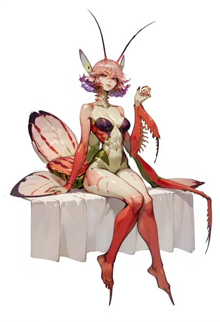 추가 트리거 단어: 이 단어들을 사용하여 캐릭터를 더 메뚜기처럼, 인간형처럼 덜 보이도록 할 수 있습니다: orchid mantis, insect arms, arthropod limbs,