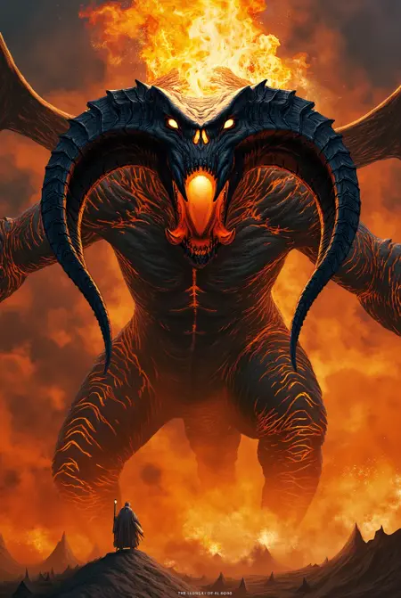 이 이미지는 반지의 제왕 세계관에서의 발로그를 재현하는 것을 목표로 합니다. 이 모델이 매우 잘 작동하는 것을 확인했으므로 다양한 프롬프트를 실험하며 즐겁게 생성해보세요!